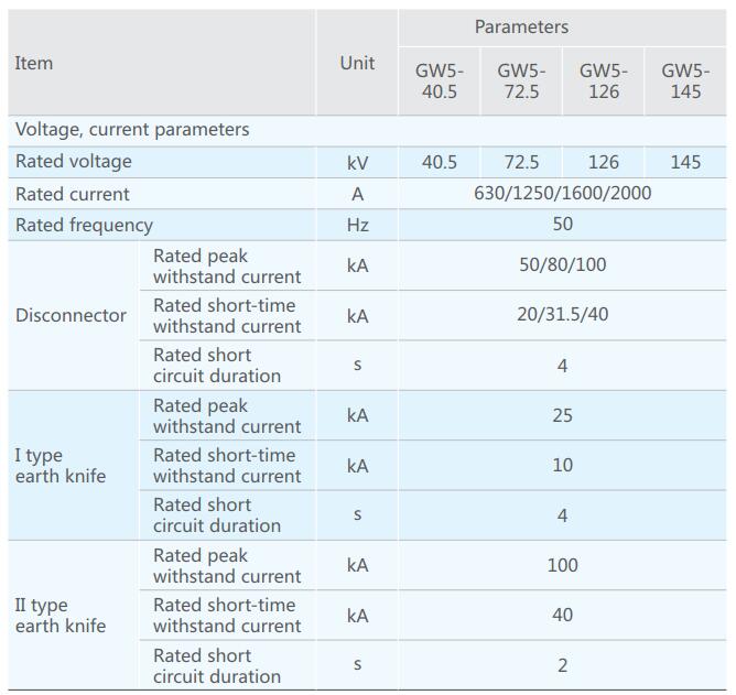 GW5 type outdoor high-voltage disconnect switch is used for three-phase AC 50Hz outdoor high voltage electrical equipment, used for the line to switching under voltage pressed no load condition, and electrical isolation the maintenanced high voltage bus, circuit breakers and other electrical equipment and charged high voltage line, can also be used for the opening and closing small capacitance or inductance current. When the knife in the normal break position, can provide a insulation distance consistent with safety requirements. Widely used in 35~110kV substation.