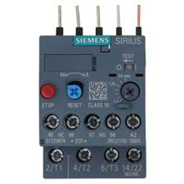 The SIEMENS 3RU2116-1CB0 thermal overload relay is engineered to provide precise protection for motors operating in the 1.8 to 2.5 A range. It ensures reliable performance against overloads and phase failures, and is designed for seamless integration with Siemens 3RT2 contactors in compact motor starter setups.